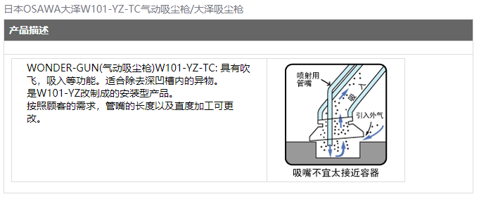 日本OSAWA大澤W101-YZ-TC氣動吸塵槍