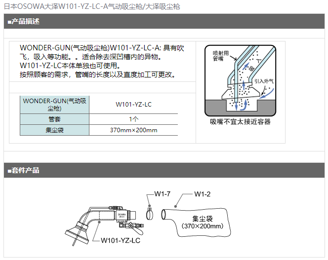 日本OSAWA大澤W101-YZ-LC-A氣動(dòng)吸塵槍