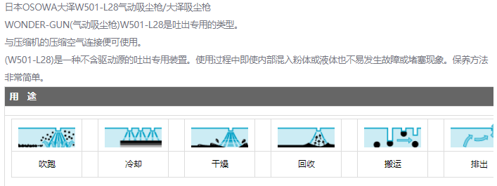 日本OSAWA大澤W501-L28氣動吸塵槍