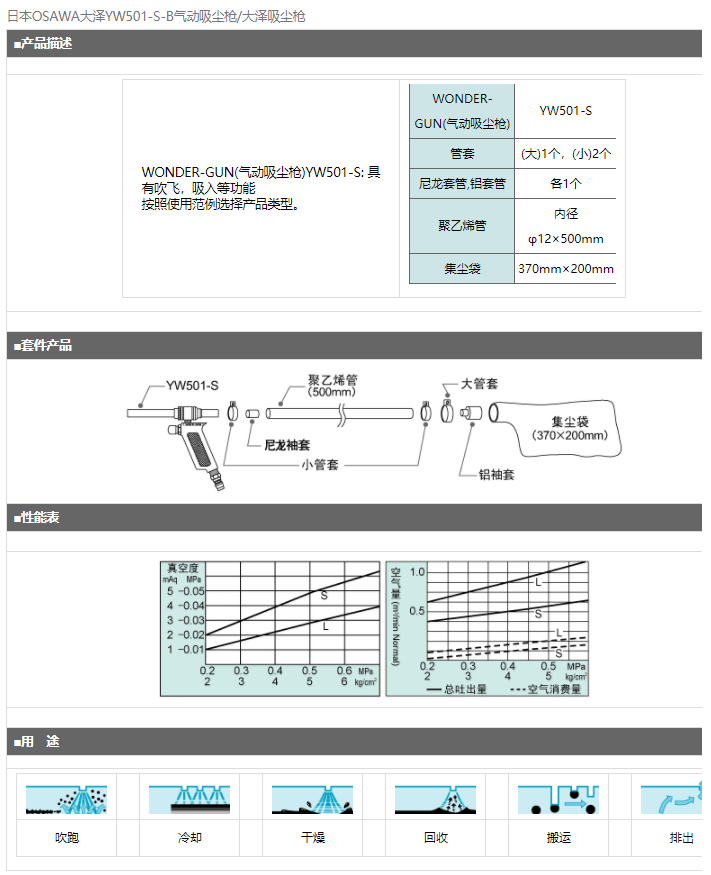 日本OSAWA大澤YW501-S-B氣動(dòng)吸塵槍