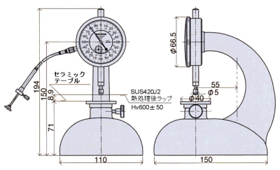 | 型號 | 千分表(標準型) | 指示誤差 (μm) | 測量臺 直徑 (mm) | 探頭 直徑 (mm) | 測量力 (N)以下 | 測量深度 (mm) | 有效 測量范圍 (mm) | 總身高 (mm) | ||