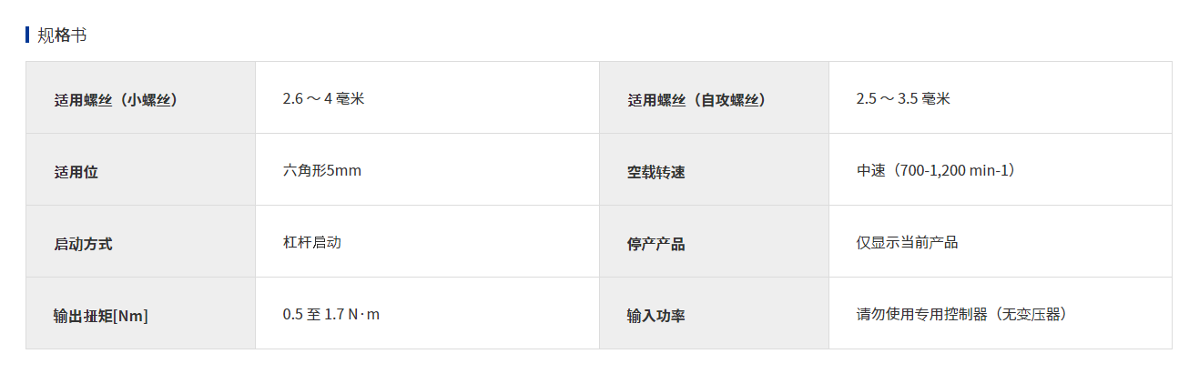 輸出扭矩[Nm]:0.5至1.7