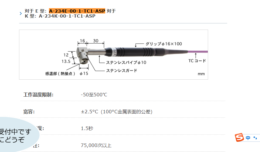 日本安立ANRITSU 溫度探頭 模溫探頭 溫度計(jì)探頭 紅外測(cè)溫儀