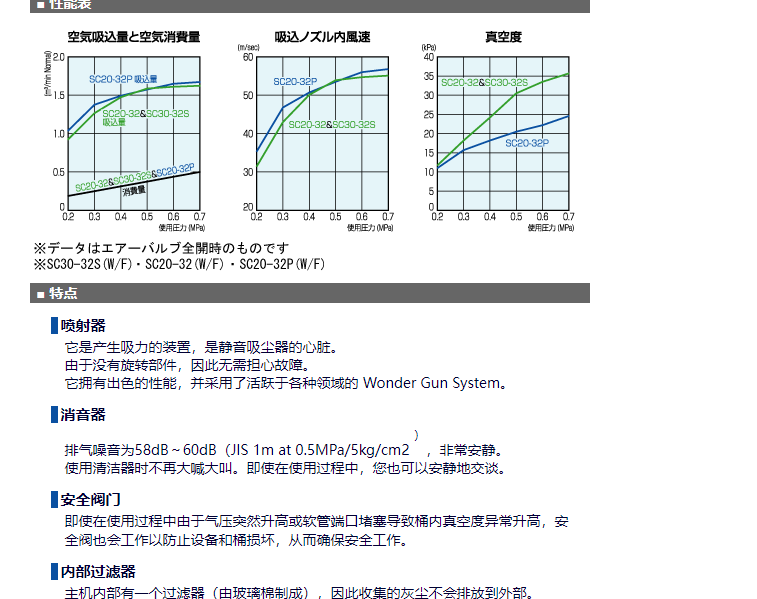 Silent Cleaner SC60-32S可以吸入壓縮空氣(compressor air)作為驅(qū)動(dòng)源。強(qiáng)力收集水、油、污泥、谷物、小礫石、金屬碎片等傳統(tǒng)工業(yè)清潔劑無(wú)法充分收集的物質(zhì)。非常適合任何工作場(chǎng)所。2級(jí)結(jié)構(gòu)/多重過(guò)濾器!長(zhǎng)時(shí)間連續(xù)使用OK!吸力強(qiáng)、降噪的吸塵器。重量:23kg 高度:1,011mm 寬度:550mm吸嘴:外徑:32mm 長(zhǎng)度:700mm吸管:內(nèi)徑:32mm 長(zhǎng)度:2000mm60 升帶腳輪的不銹鋼罐。也可提供強(qiáng)型。點(diǎn)擊此處了解詳情