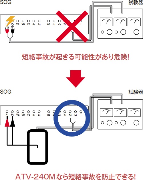 是為了防止在進(jìn)行“VT內(nèi)置PAS聯(lián)鎖測(cè)試”時(shí),因測(cè)試設(shè)備的夾子短路而導(dǎo)致“沒(méi)有保險(xiǎn)絲等保護(hù)裝置的內(nèi)置VT損壞”的裝置。),以及當(dāng)檢測(cè)到電壓時(shí),信號(hào)輸出(觸點(diǎn))變?yōu)?ON,并且操作燈閃爍。