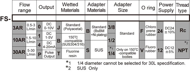 *說明基于日本工業(yè)標準 (JIS) 規(guī)格模型 FS-3ARFS-10ARFS-30AR流量范圍 0.5-3升/分鐘1.5-10升/分鐘5-30 升/分鐘體液 工業(yè)用水、水工作壓力 0.97兆帕流動溫度 0-60C°(不結冰、不結露)環(huán)境溫度 0-40C°(不結冰、不結露)電源 12 VDC ±5% 或 24 VDC ±10%目前的消費 Max.50mA (DC1-5V,4-20mA: Max.70mA)電纜 AWM20276,9芯/0.2mm?/500mm紅色的 電源黑色的 地面白色的 繼電器輸出常用綠色的 繼電器輸出(一)黃色的 繼電器輸出 (b)棕色的 模擬電壓輸出橙子 模擬電流輸出藍色的 脈沖輸出灰色的 備件繼電器輸出 負載電流:小于DC2A 施加電壓:DC30V以下 輸出方式:a或b接點輸出模擬輸出 電壓輸出:DC0-10V或DC1-5V 電流輸出:DC4-20mA脈沖輸出 負載電流:小于DC100mA 施加電壓:小于DC40V 輸出方式:A或B集電極開路 頻率輸出 FS-3AR : 0-43Hz 頻率輸出 FS-10AR : 0-93Hz 頻率輸出 FS-30AR : 0-121Hz展示 液晶顯示器,發(fā)光二極管O型圈 氯丁橡膠或氟橡膠濕料 POM、聚酰胺適配器尺寸 Rc3/8" 或 Rc1/2"適配器材料 不銹鋼或鍍鎳黃銅準確性 滿量程±2.5%流動的方向 自由的定位 自由的重量 約380g保護 耐候電子產(chǎn)品訂單